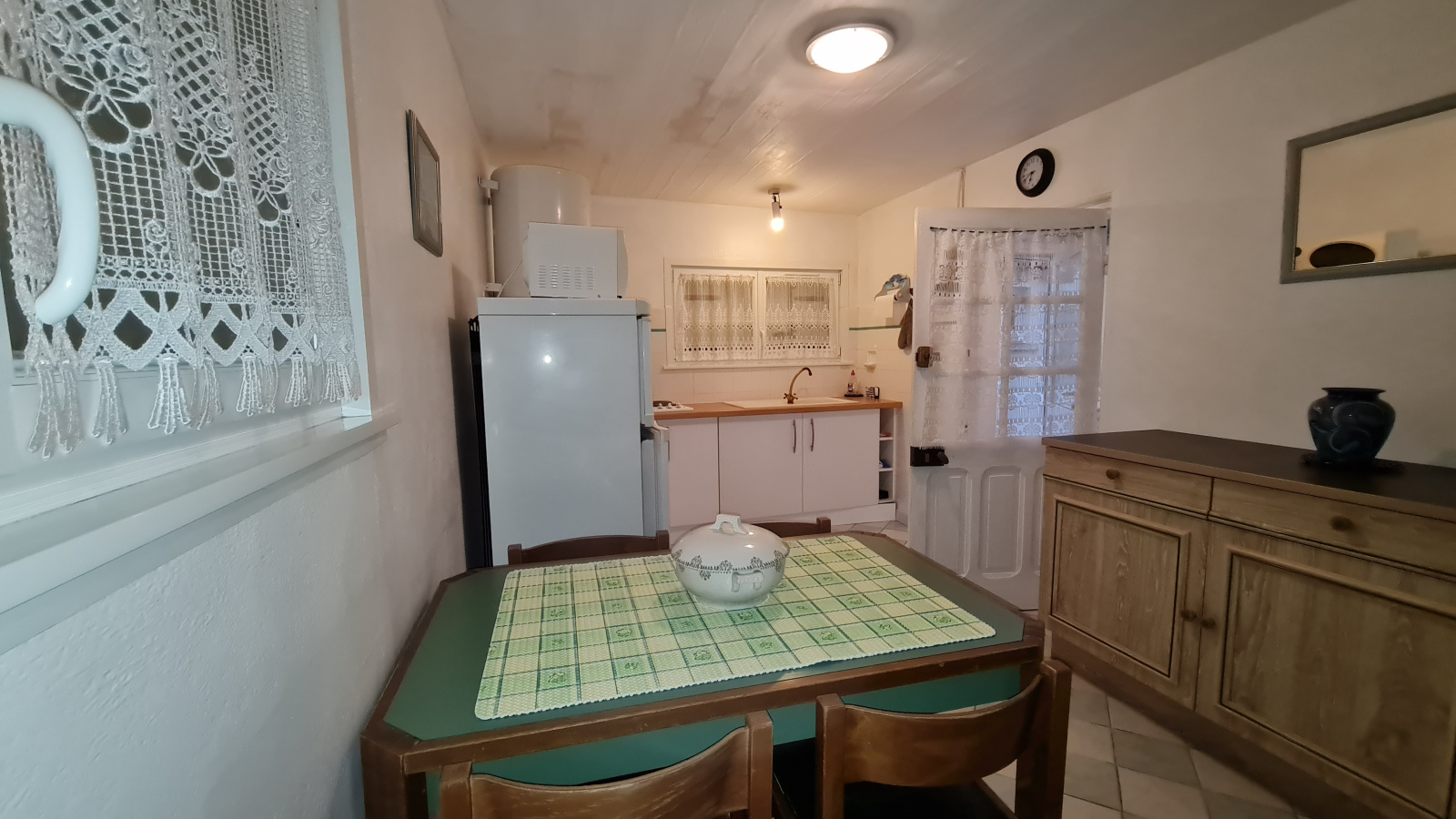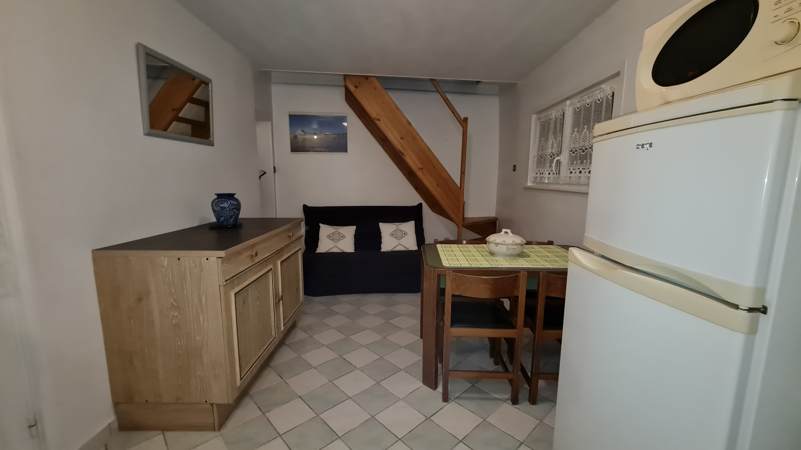 Proche du port et de tout commerce, maison de pêcheur bien entretenue, proposant au rez-de-chaussée un hall desservant une cuisine équipée aménagée fermée,un WC, une salle de bain avec douche, une salle à manger et un salon avec cheminée. A l'étage deux chambres avec rangements. Une annexe de 32 m² avec pièce à vivre, salle d'eau avec wc et chambre à l'étage sur la mezzanine permet d'envisager un rendement locatif ou recevoir agréablement les amis. A l'extérieur un jardin clos avec garage.