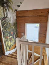 La maison principale est composée au rez-de-chaussée d'un salon/séjour avec cuisine aménagée et semi-équipée. A l'étage : trois chambres dont une avec vue sur mer, une salle d'eau avec WC. Mitoyenneté sur un côté.